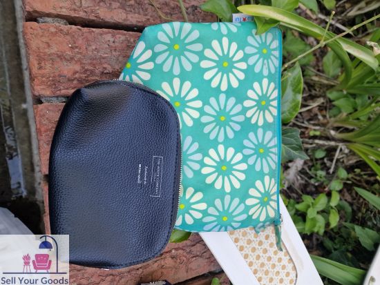 Blue floral toiletry bag & small black makeup bag